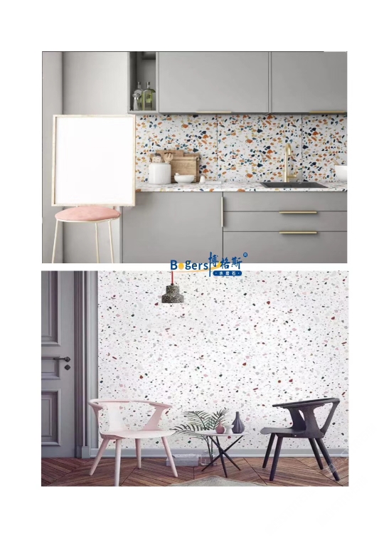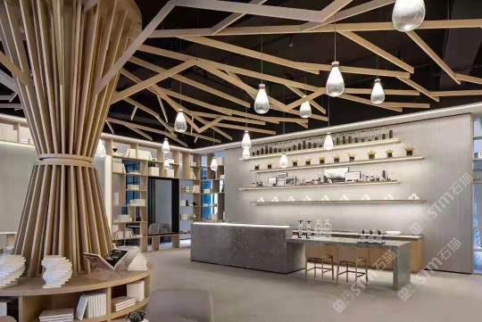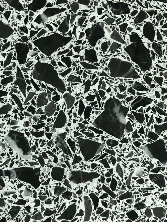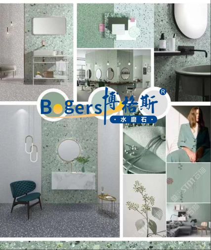 隨著工藝水平和材料品質(zhì)的巨大突破,新型預(yù)制無機水磨石采用環(huán)保型無機粘劑,不含樹脂膠水等,通過高頻高壓抽真空震動壓制而成,硬度更高更耐磨,施工更靈活方便。憑借其時髦大氣的設(shè)計呈現(xiàn)出一種慢慢的感