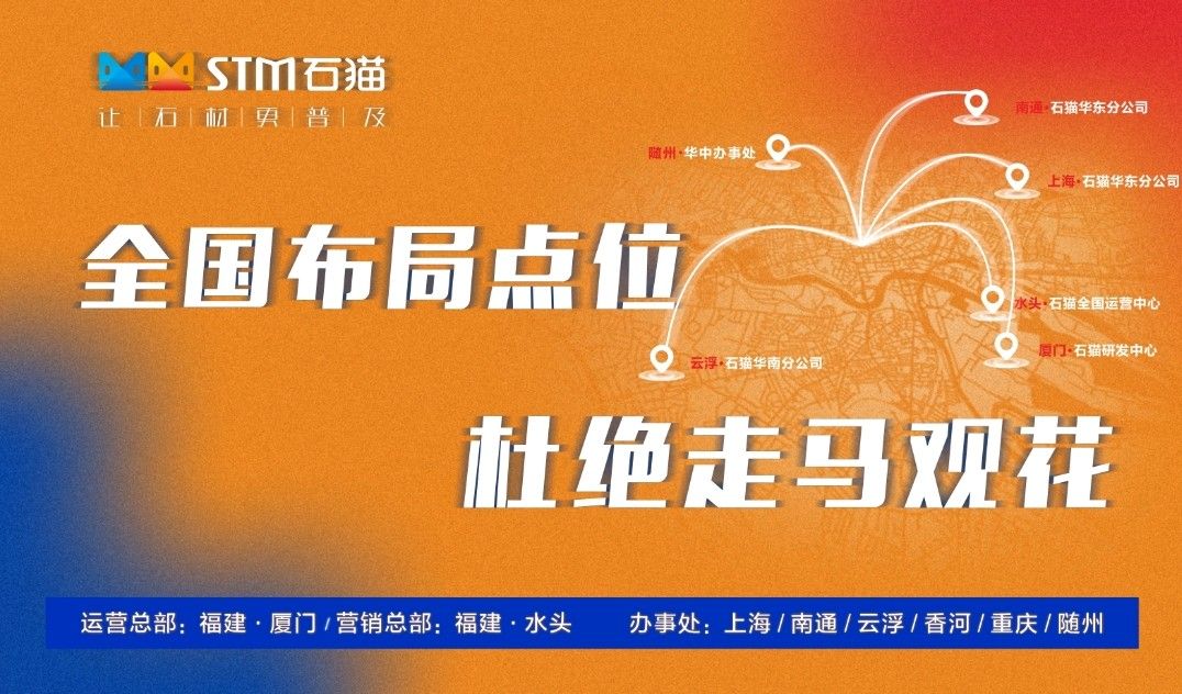 廈門石貓科技有限公司是廈門市市級(jí)高新技術(shù)企業(yè)和高新技術(shù)企業(yè)。公司成立于2013年,是一家專業(yè)的石材互聯(lián)網(wǎng)科技公司,運(yùn)營(yíng)總部座落于美麗的海濱城市廈門,事業(yè)部設(shè)立在全球石材產(chǎn)業(yè)基地-中國(guó)福建水頭;石貓通過戰(zhàn)略布局,先后在華東、華南、華北、西部設(shè)立分公司,將步伐跨到國(guó)內(nèi)各個(gè)區(qū)域的石材基地,實(shí)現(xiàn)從技術(shù)開發(fā)、營(yíng)銷推廣、 廣告服務(wù)、線上線下融合的全產(chǎn)業(yè)服務(wù)升級(jí),為石材企業(yè)品牌推廣及運(yùn)營(yíng)效率的提升,提供了全方位的互聯(lián)網(wǎng)產(chǎn)品與服務(wù)。