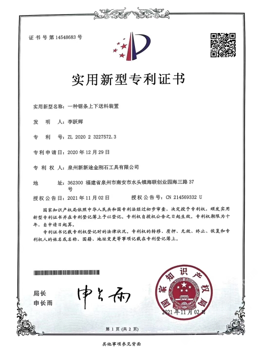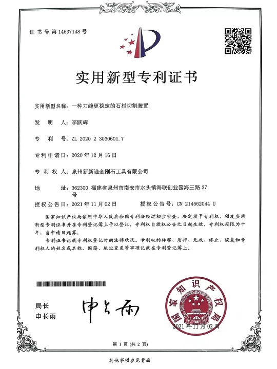 發(fā)布信息: 南安市新途金剛石工具針對目前大理石切割灰料難的現(xiàn) 狀,特別是“愛馬仕灰、瑪雅灰、意大利灰、露娜灰、閃 電灰、灰不灰、羅曼蒂克灰”等帶網(wǎng)格狀花紋、暗裂、孔 洞等切割隱患難加工的荒料,新途工具研發(fā)了一種不掉齒 的排鋸刀頭:“安全切割一切難加工的灰色大理石荒料”。 不單是刀頭鋸條特殊設(shè)計,更是結(jié)合了十多年的切割經(jīng) 驗,通過對機(jī)臺冷卻水及操作參數(shù)、退刀和出料等操作工 藝的改進(jìn),大大地提高了灰料切割的安全、高效。真正做 到了不倒料或少倒料。 作為長期穩(wěn)定的合作方,誠懇感謝:東升股份/遠(yuǎn)達(dá)石材/ 奧力石業(yè)/泉興隆石業(yè)/翰將石業(yè)/中發(fā)大理石/新容石業(yè)/寶 多龍石業(yè)/銳豐源石業(yè)/漢榮石業(yè)/超億石業(yè)/宗藝石業(yè)/尊龍 石業(yè)/正大石業(yè)/銘裕石業(yè)/正方石業(yè)/尚衡石業(yè)/捷成石業(yè)/振 南石/天正/描側(cè)石/率硬石上/仏期石/流中石上/灣源 石業(yè)/瑜興石業(yè)/豪闊石業(yè)/興業(yè)石業(yè)/萬華石業(yè)/振興石業(yè)/豪 聞石業(yè)/奧都石業(yè)/永光石業(yè)/明晟石業(yè)/加州(安固)石業(yè) 等等優(yōu)質(zhì)供應(yīng)商廠家(排名不分先后) 本公司秉承合作共贏,誠懇敬業(yè)的態(tài)度在石材加工切割領(lǐng) 域深度專研。歡迎廣大群體來領(lǐng)略新途。