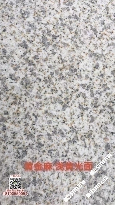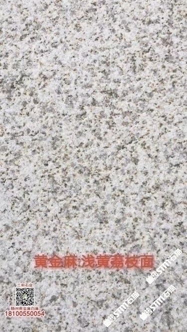 發(fā)布信息: 隨州黃金麻石材-隨州白麻花崗巖-光面黃金麻-燒面黃金麻-荔枝面黃金麻-光面白麻-燒面白麻-荔枝面白麻 隨縣三和石業(yè) 劉經(jīng)理 18100550054(微信同號(hào))專業(yè)隨州黃金麻/白麻供應(yīng)商廠家,工廠位于隨州石材工業(yè)園;專注于別墅幕墻干掛工程及園林地鋪石材加工,實(shí)力工廠,廠礦一體;主營(yíng):隨州黃金麻、隨州白麻、湖北黃金麻、湖北白麻、黃銹石、白銹石、黃色麻石、白色麻石、光面黃金麻、燒面黃金麻、荔枝面黃金麻等花崗巖;同等品質(zhì)基地批發(fā)價(jià)格更低,隨縣三和石業(yè)有限公司歡迎你來電溝通洽談業(yè)務(wù)!