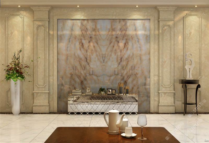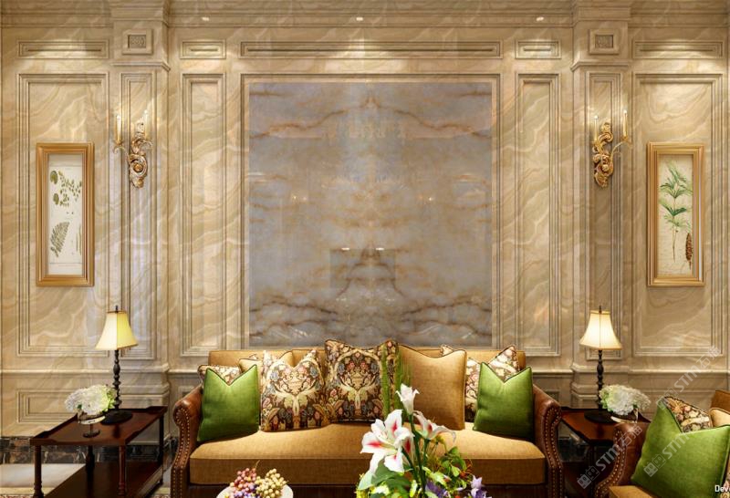 黃花冰玉做背景墻效果杠杠的