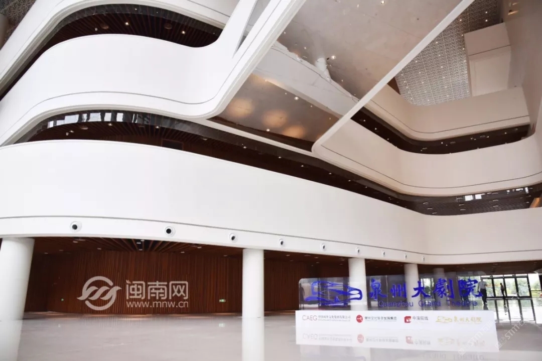 發(fā)布信息: 泉州大劇院整體設計猶如市花“刺桐花”的泉州市公共文化中心,環(huán)灣面海,欣欣向榮。公共文化中心位于東海片區(qū)山海中軸線中段,毗鄰泉州市政府,四大主體文化場館泉州科技與規(guī)劃館、東海工人文化宮、泉州大劇院、泉州圖書館一起成為“亞洲多元文化發(fā)展中心”。自2015年8月項目啟動建設以來,倍受泉州市民關注,這里將成為文化新家園。 “四朵花瓣”之一的泉州大劇院即將于2019年6月30日率先揭幕。 18日上午, 泉州大劇院舉行了 開幕演出季新聞發(fā)布會。 坐落于東海的泉州市公共文化中心 “四朵花瓣”之一的“海絲之花” 率先揭開了神秘面紗。 室內設計延續(xù)外立面元素, 抽取海洋元素疊浪與海面波光等為設計意向, 水平向的穿孔鋁板像絲綢一般輕盈通透, 表達出舞蹈的節(jié)奏與音樂的韻律, 也體現(xiàn)出泉州作為“海上絲綢之路”起點城市的文化特點?!昂=z樂章”為設計主題, 建筑外立面設計采用雙層表皮結構, 內層為玻璃幕墻,外層為金屬穿孔鋁板表皮, 水平方向的波浪形曲線設計室內設計延續(xù)外立面元素, 抽取海洋元素疊浪與海面波光等為設計意向, 水平向的穿孔鋁板像絲綢一般輕盈通透, 表達出舞蹈的節(jié)奏與音樂的韻律, 也體現(xiàn)出泉州作為“海上絲綢之路”起點城市的文化特點。