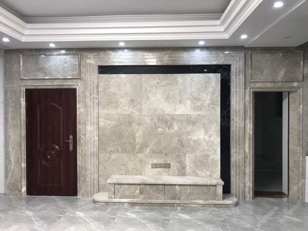 全屋定制,云朵拉灰爵士白搭配,此處為云朵拉灰雕花,厚度3公分整體雕刻,效果極好
