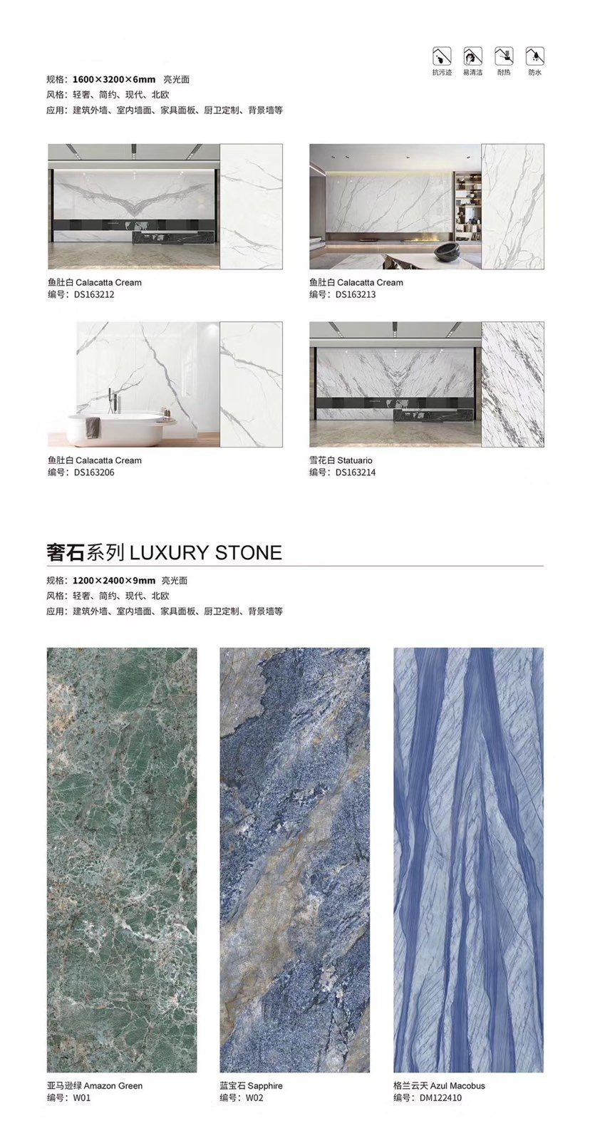 發(fā)布信息: ????SIBELAN 斯貝納巖板???? ????意大利設(shè)計(jì)師精選巖板???? 我們可以幫老總您加工為成品, 全國范圍內(nèi)可安排專業(yè)團(tuán)隊(duì)安裝. 做到您一次性采購 省心. 放心. 省時(shí). 低價(jià)! 巖板紋路版面全多達(dá)199 款 勵(lì)志做服務(wù)五星的巖板專業(yè)供應(yīng)商 魚肚白 雪花白 格蘭云天 寒江雪 爵士白 幻影灰 勞倫黑金 火山灰 亞馬遜 艾維拉 羅馬黑檀 貝特巖 細(xì)花白 羅馬灰 云朵拉灰 魚肚金 莎羅娜 莎羅蘭 勞倫白金 拉薩白 中花白 灰冰玉 卡拉拉白 撒金黑 清水玉 薩瓦灰 莎士比亞 大花灰 白冰玉 銀灰洞 阿瑪尼灰 綠紋玉 綠冰玉 藍(lán)紋玉 保加利亞灰 鐵銹 黑木紋 流砂灰 純白 純灰 純黑 TEL: 15905069590 聶 各種版面規(guī)格全部如下: 1200×600×11mm 啞光 1500×800×11mm 啞光 1800×900×11mm 啞光 1800×900×12mm 啞光 2600×800×15mm 啞光 2400×1200×6mm 啞光/亮光 2400×1200×9mm 啞光/亮光 2400×1200×15mm 啞光 2700×1200×6mm 啞光/亮光 2700×1600×12mm 啞光/亮光 3200×1600×6mm 啞光/亮光 3200×1600×12mm 啞光/亮光