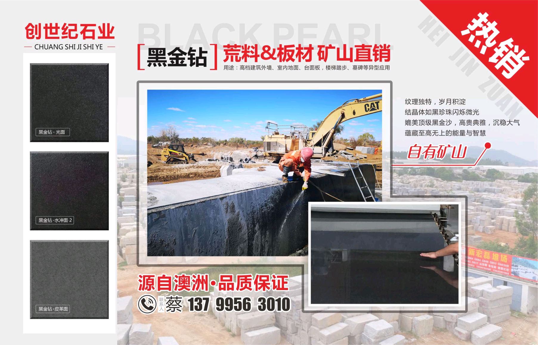 發(fā)布信息: 【黑金鉆】 荒料/板材 自有礦山 廠礦直銷,源自澳洲,品質(zhì)保證,量大價(jià)優(yōu),歡迎咨詢選購(gòu),聯(lián)系人 15005075070陳 13799979778朱