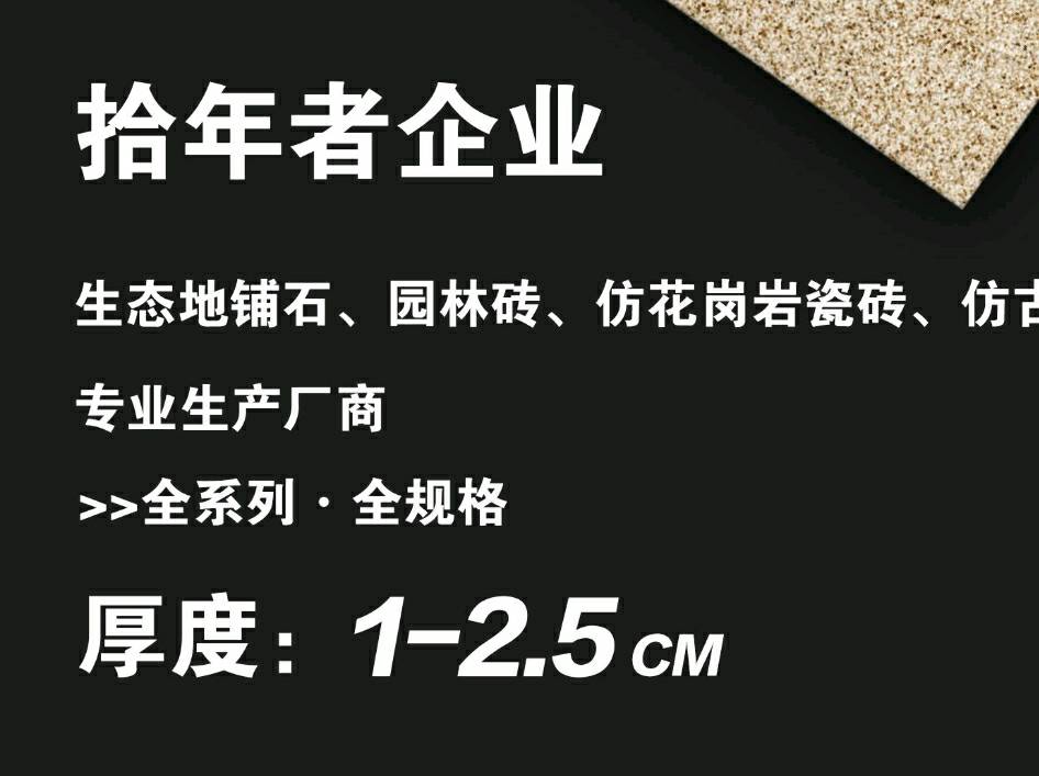 發(fā)布信息: 拾年者企業(yè)-生態(tài)地鋪石系列 厚度:1.0/1.2/1.5/1.8/2.0cm 規(guī)格:30*60/60*60/60*90/60*120 適用:園林地鋪/市政工程/幕墻干掛 靈活定制 專線生產(chǎn) 工藝齊全