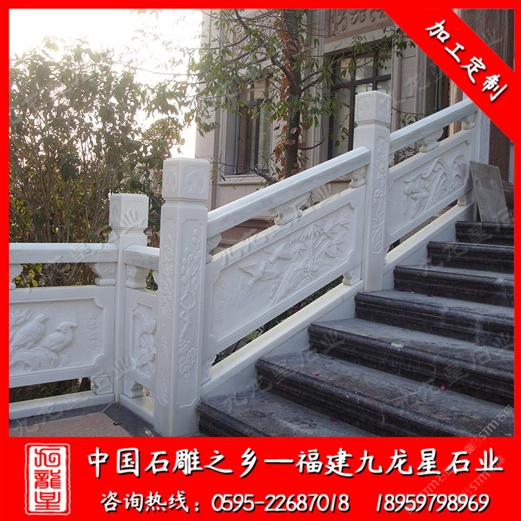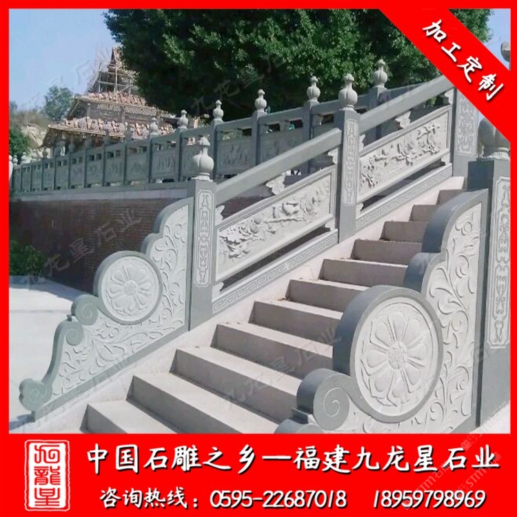 發(fā)布信息: 九龍星石業(yè)常年批發(fā)石材欄桿護(hù)欄,寺廟欄桿、別墅欄桿、景區(qū)石雕護(hù)欄、河道池塘欄桿護(hù)欄、公路石雕護(hù)欄等等。歡迎咨詢我們,我們會(huì)發(fā)您一些適合您的石材欄桿護(hù)欄圖片,并為您做出報(bào)價(jià)(18959798969微信同號(hào))。 石材欄桿護(hù)欄使用天然石材雕刻制作,使用壽命長(zhǎng),可塑性非常強(qiáng),可以制作成方形、圓形、橢圓形等各種樣式,并可在上面雕刻各式圖案。 石材欄桿護(hù)欄起到防護(hù)安全,在建筑物氣勢(shì)方面起著重要的作用。石欄桿應(yīng)用廣泛,適用于道路、橋梁、河道、堤壩,寺廟等。石雕欄桿主要以花崗巖石材和青石石材較常見(jiàn)。