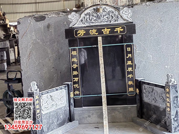 印度黑金沙墓碑套墓墓碑成品石雕刻墓碑主碑安哥拉黑石