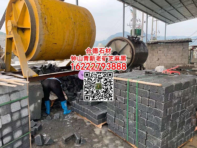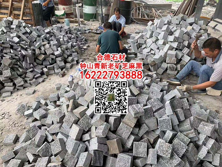 廣西黑石材鐘山青小方塊馬蹄石新礦654芝麻黑彈石