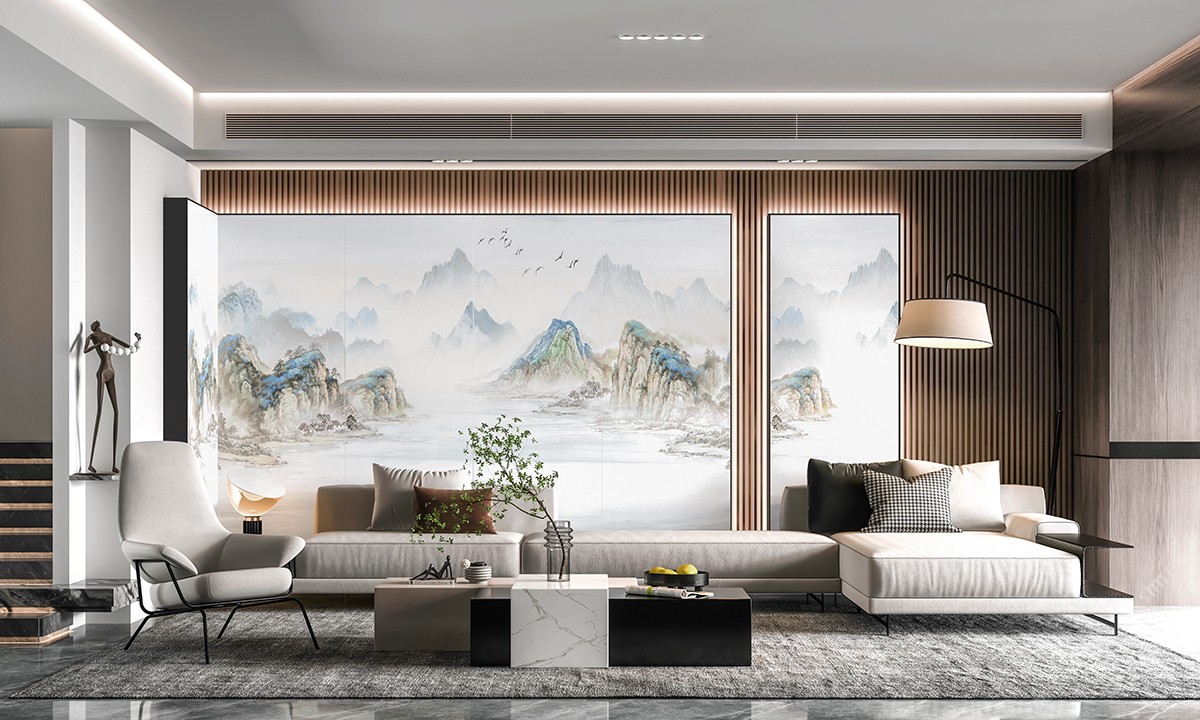 唐馳國風新中式巖板背景墻