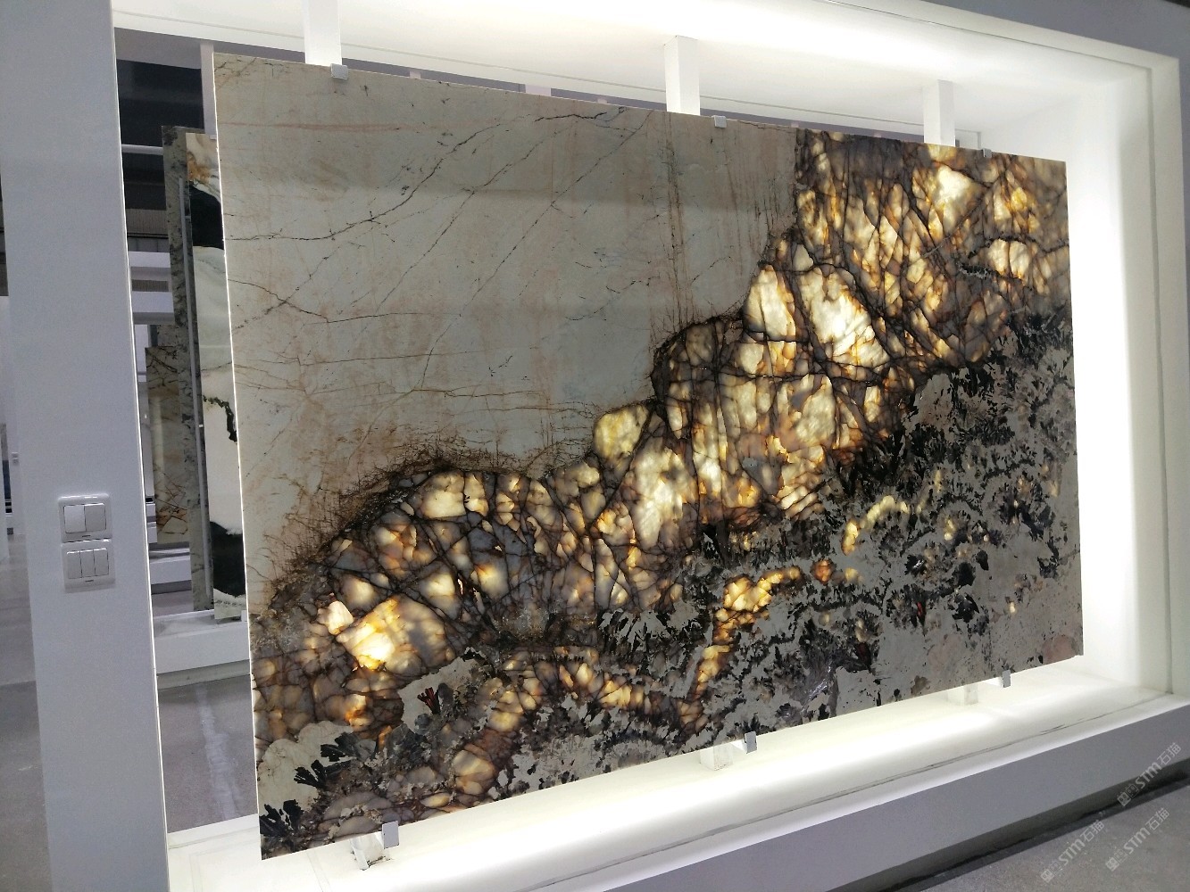 新正大奢石館[奢石品牌]潘多拉背景墻山水畫。