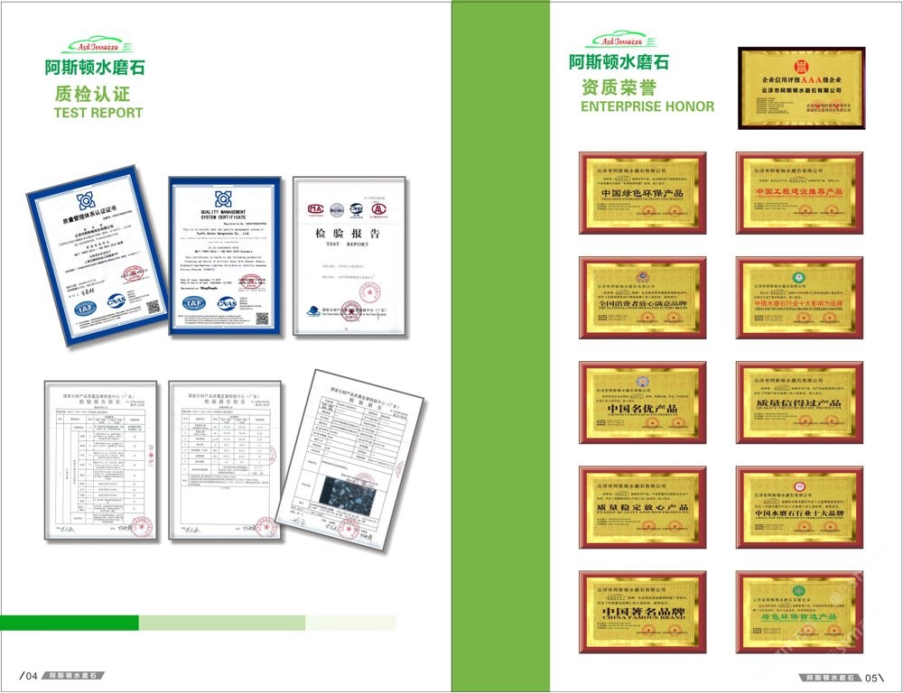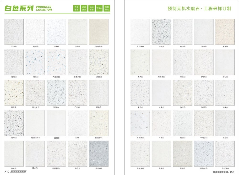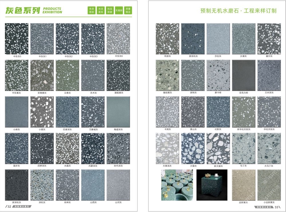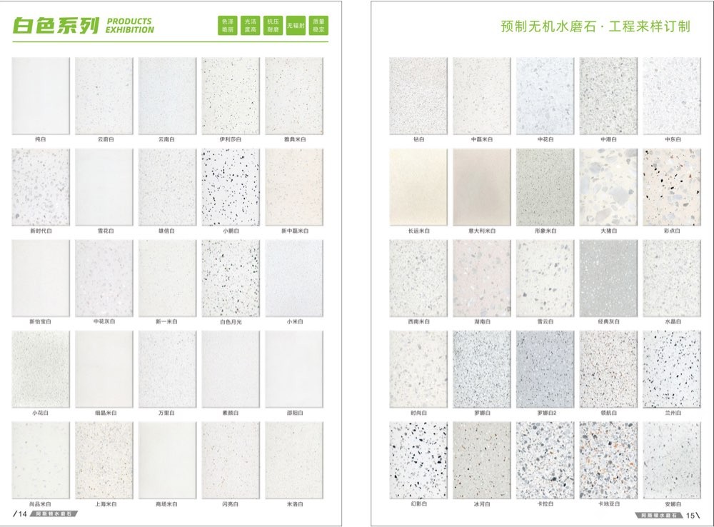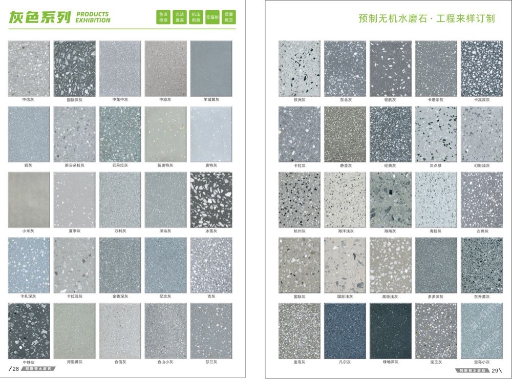發(fā)布信息: #阿斯頓水磨石 新版畫冊預告,喜歡嗎 純無機水磨石,專業(yè),品質(zhì)保證! ① 無樹脂、天然花色 ② 可定制任意款式(設(shè)計/尺寸) ③ 來板仿樣2~3天完成 ④ 生產(chǎn)、銷售、加工一體化