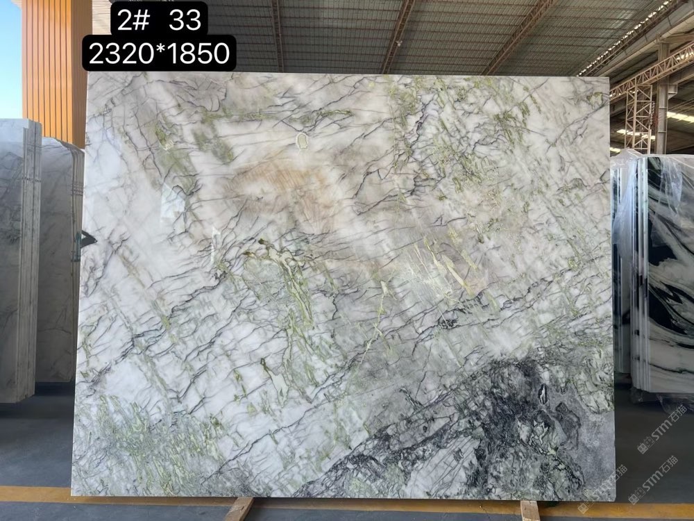 綠色石材的色彩豐富多樣,從淺綠到深綠,到墨黑,這種多樣性使其在建筑裝飾中具有很強的視覺沖擊力。 無論是用于墻面、地面還是臺面,都能為空間增添一份生機與活力。