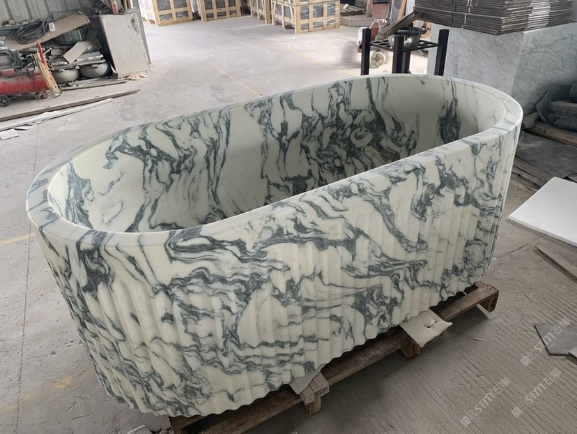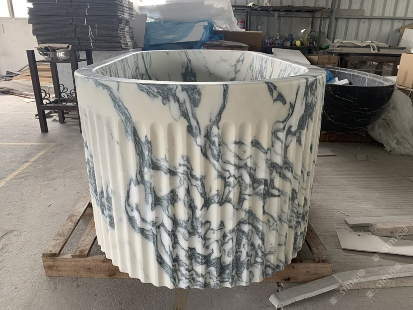 大花白浴缸 石材洗手盆柱盆擺件托盤(pán)花瓶咖啡桌