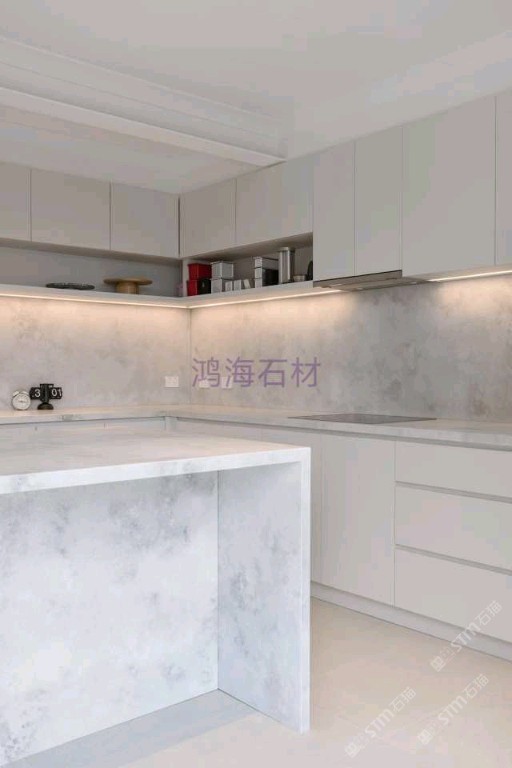 鴻海石英石廚房臺(tái)面墻面應(yīng)用