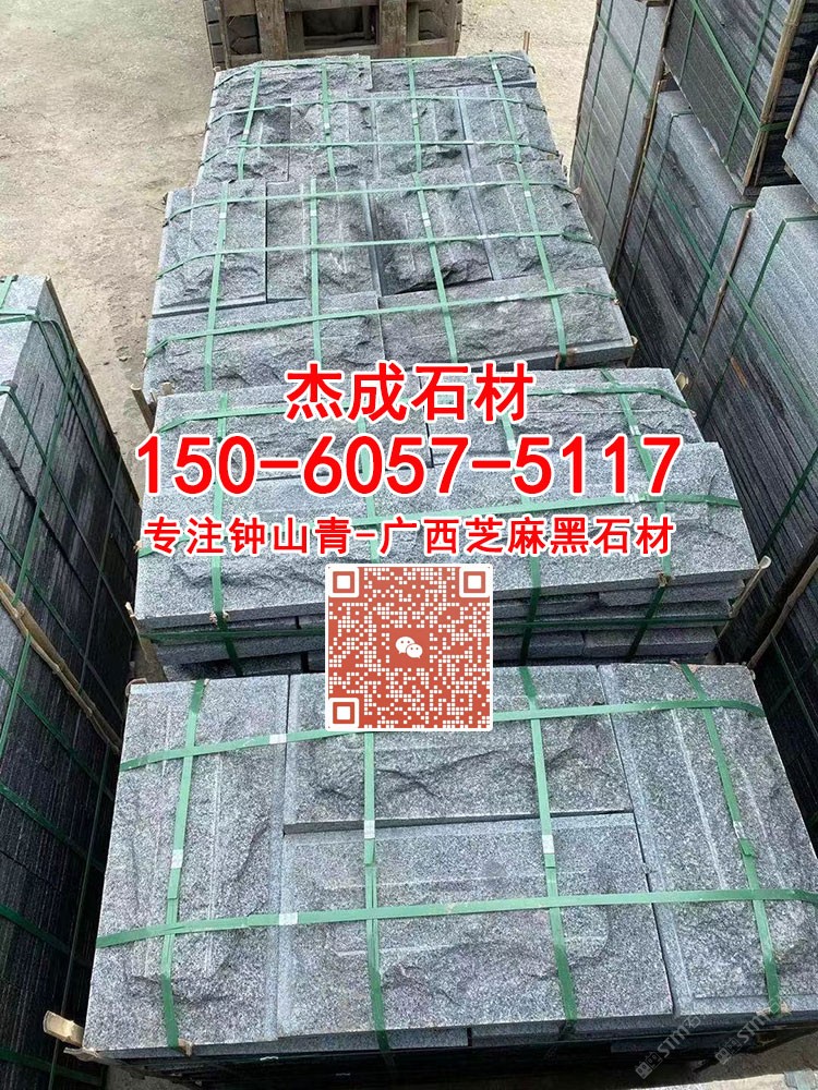 廣西G654芝麻黑花崗巖鐘山青石材自然面幕墻背景墻