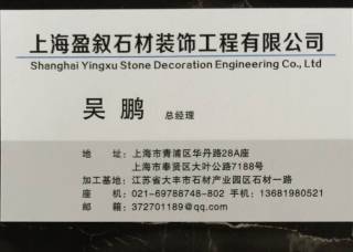 上海盈敘石材裝飾有限公司主營產品:法國米黃3,奧特曼,白玉蘭,沉香米黃,金蜘蛛,希臘白木紋1,土耳其灰,黃金麻淺黃,湖北白麻,富貴紅1,藍色妖姬企業(yè)地址:上海青浦區(qū)華新鎮(zhèn)華丹路28A座